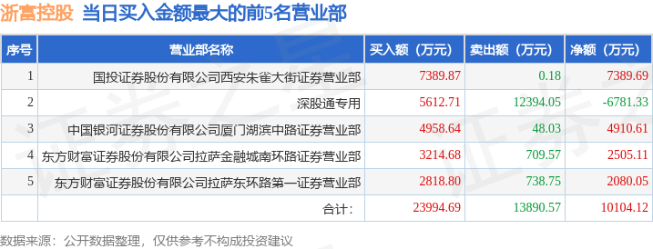 从龙虎榜公布的当日买卖数据来看,机构合计净卖出6100.89万元,北向资金合计净卖出6781.33万元。朱雀大街、流沙河等知名游资榜上有名。(知名游资朱雀大街一般指国投证券股份有限公司西安朱雀大街证券营业部席位、知名游资流沙河一般指中国银河证券股份有限公司绍兴证券营业部席位,根据市场资料整理,仅供参考)